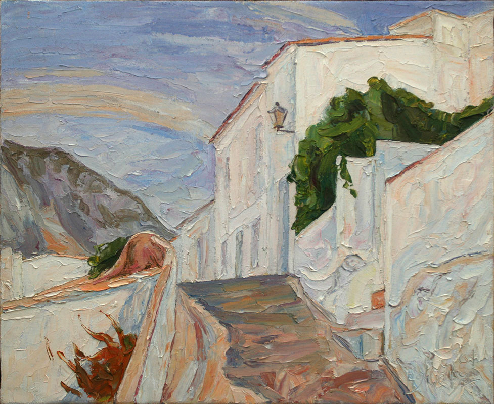 Almacén urbano En Pinturas Cuadro realizado en óleo sobre lienzo. Las dimensiones de la obra son 55 por 38 centímetros. Etiquetasalmacéncalleurbano Reflejos en el río Muro en la calle
