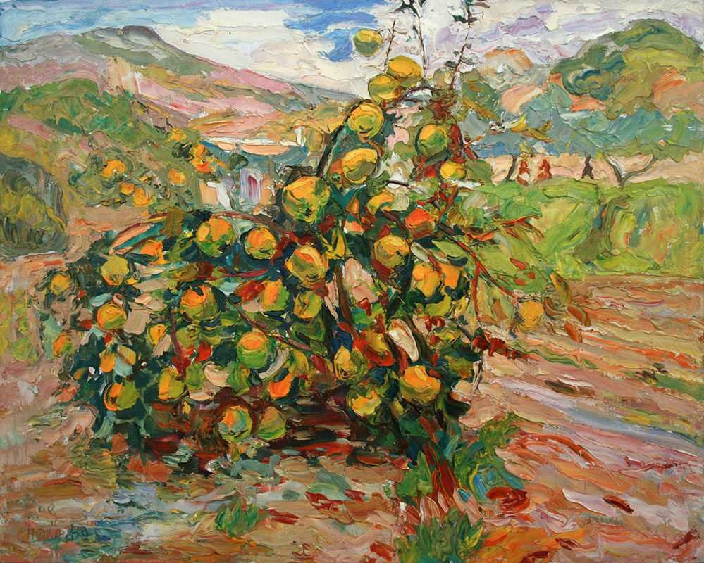Canasto de fruta En Pinturas Cuadro realizado en óleo sobre lienzo. Las dimensiones de esta obra son 73 por 60 centímetros. Etiquetasbodegóncanastofruta Paseo en familia Mesa y banquillo