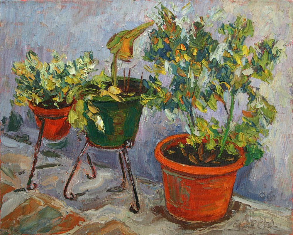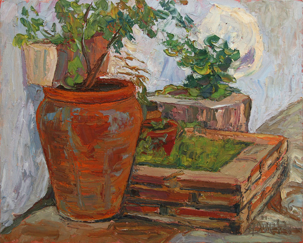 Colección Calles 26/26 En Pinturas Cuadro realizado en óleo sobre lienzo. Las dimensiones de la obra son 41 por 33 centímetros. Se vende en conjunto con las colecciones Agua, Macetas, Campo y Calles. Etiquetasautorretratocallescasas Colección Calles 25/26 Colección Macetas 1/26