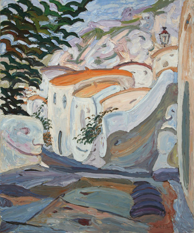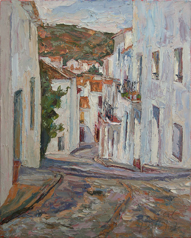 Colección Calles 4/26 En Pinturas Cuadro realizado en óleo sobre lienzo. Las dimensiones de la obra son 41 por 33 centímetros. Se vende en conjunto con las colecciones Agua, Macetas, Campo y Calles. Etiquetascallescasas Colección Calles 3/26 Colección Calles 5/26