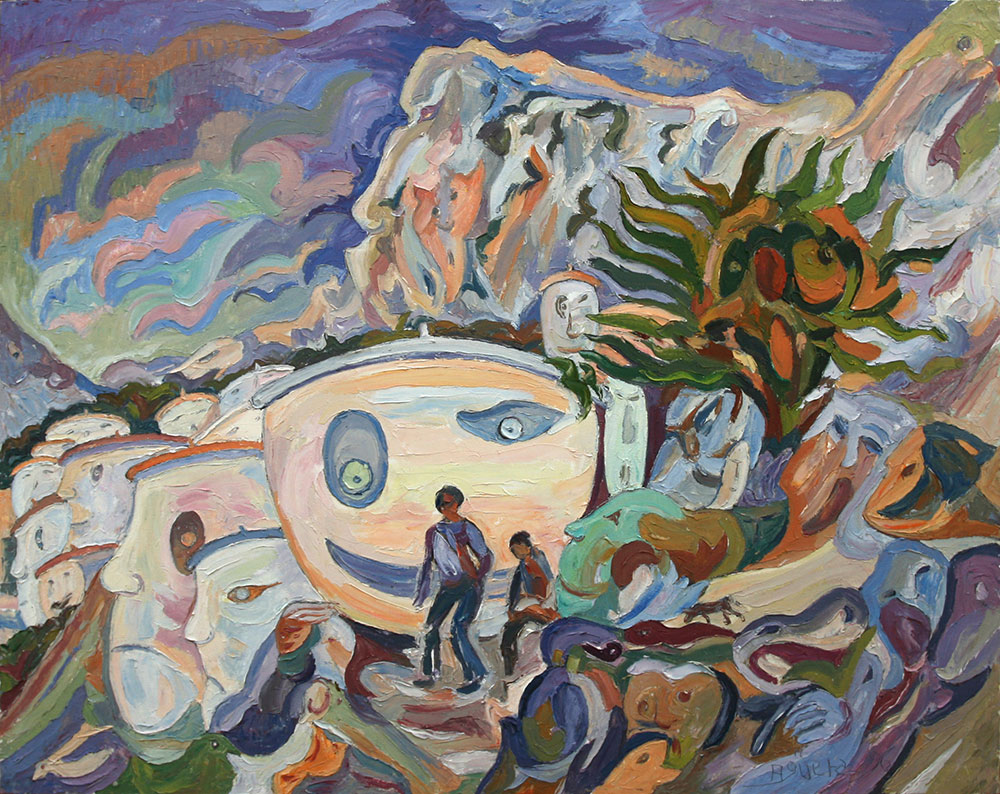 Reflejos verdes En Pinturas Cuadro realizado en óleo sobre lienzo. Las dimensiones de la obra son 46 por 55 centímetros. Etiquetasreflejosverdes Árbol en el camino Reflejo de barca