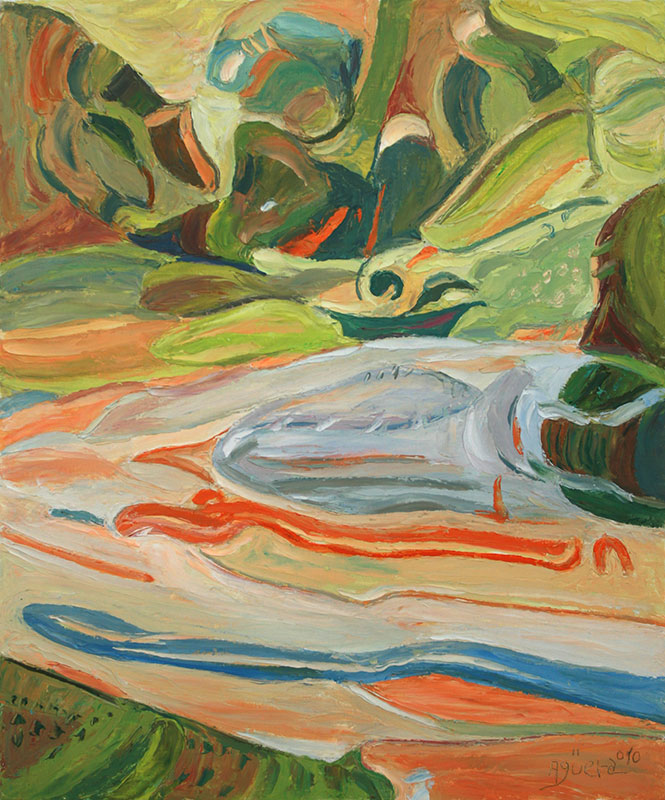 Reflejos verdes En Pinturas Cuadro realizado en óleo sobre lienzo. Las dimensiones de la obra son 46 por 55 centímetros. Etiquetasreflejosverdes Árbol en el camino Reflejo de barca