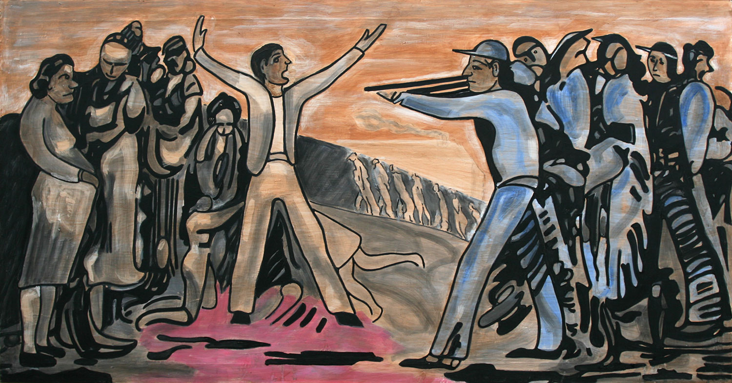 Sucedió en La Sauceda En Pinturas Cuadro realizado con técnica mixta sobre lienzo. Las dimensiones de la obra son 210 por 110 centímetros. Etiquetasfusilamientomasacrerepresiónsaucedasucedió Paredes de Ubrique Barbarie